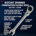 13mm Ratchet Spanner Flexi head Combination Ring Open End Wrench Flex 72 Teeth