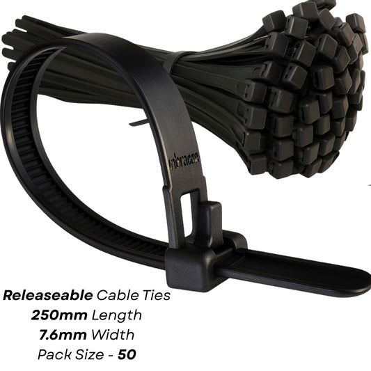 RELEASABLE REUSABLE CABLE TIES BLACK STRONG ZIP TIE WRAPS PLASTIC NYLON