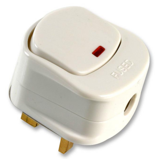 Switched Plug Top with Red Neon Indicator 13A Mains Plug (Black/White)
