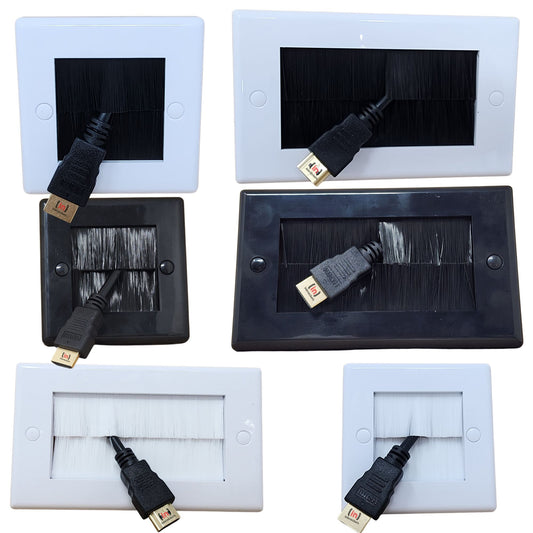 Versatile Brush Faceplate Cable Exit/Entry Wall Cover - Choose Single or Double Gang, Black or White