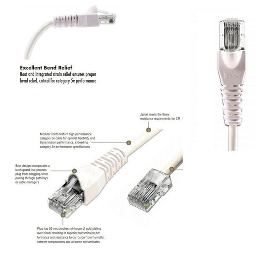 Cat5e RJ45 Network Ethernet LAN UTP Patch Cable - Fast Internet Connection 5metres White