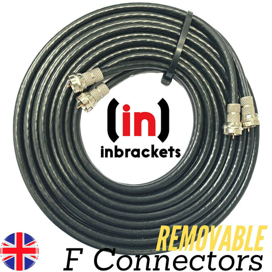 Sky Cable Extension Twin Coax Removable F plugs Q Satellite coaxial lead inc Clips (BLACK)