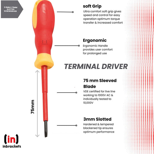 Screwdriver VDE Electrical Slotted Flat Insulated Terminal Driver 3mm x 75mm Pack of 2Regular price £6.25Regular priceUnit price / per-