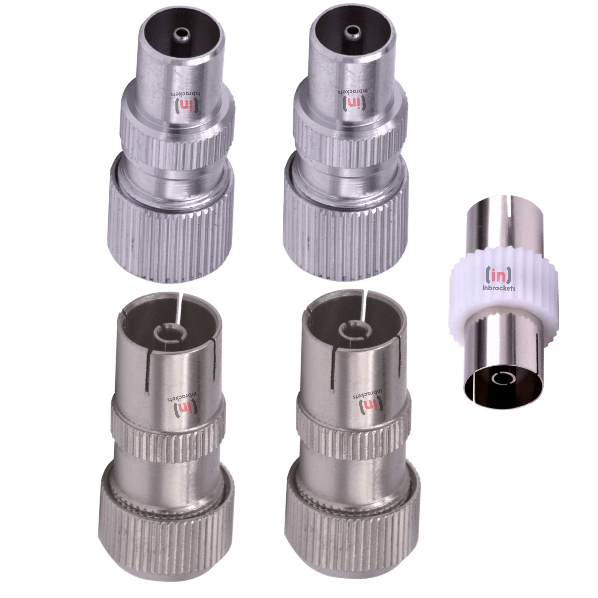 Aerial Coaxial Cable Connector Set - 2 Female & 2 Male TV Aerial Connectors with Coupler - Coaxial RF Cable Plug Kit (5-Piece)