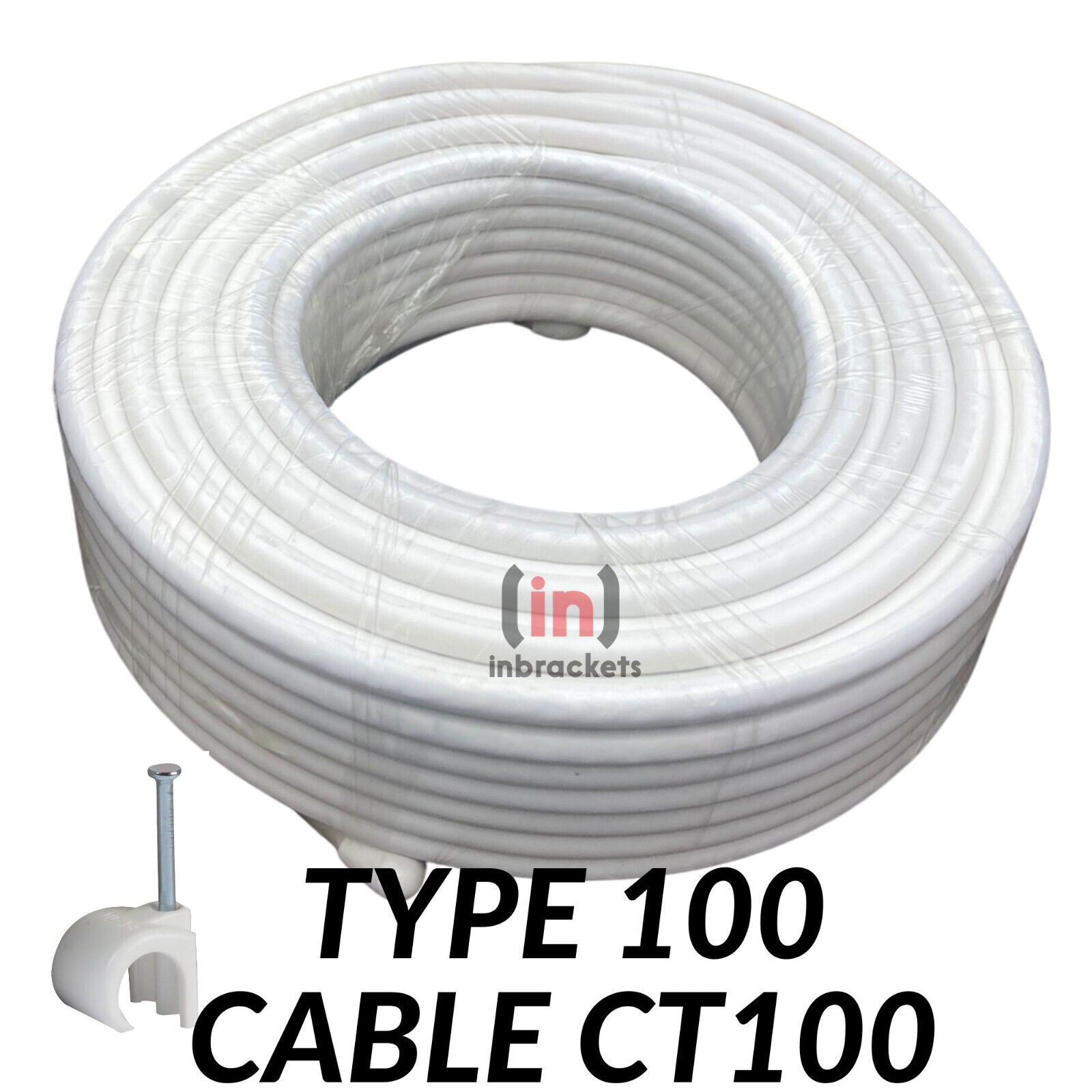 CT100 Satellite Digital TV Aerial Coax Cable Coaxial Type 100 CAI Approved UK Includes 2 Clips Per Metre