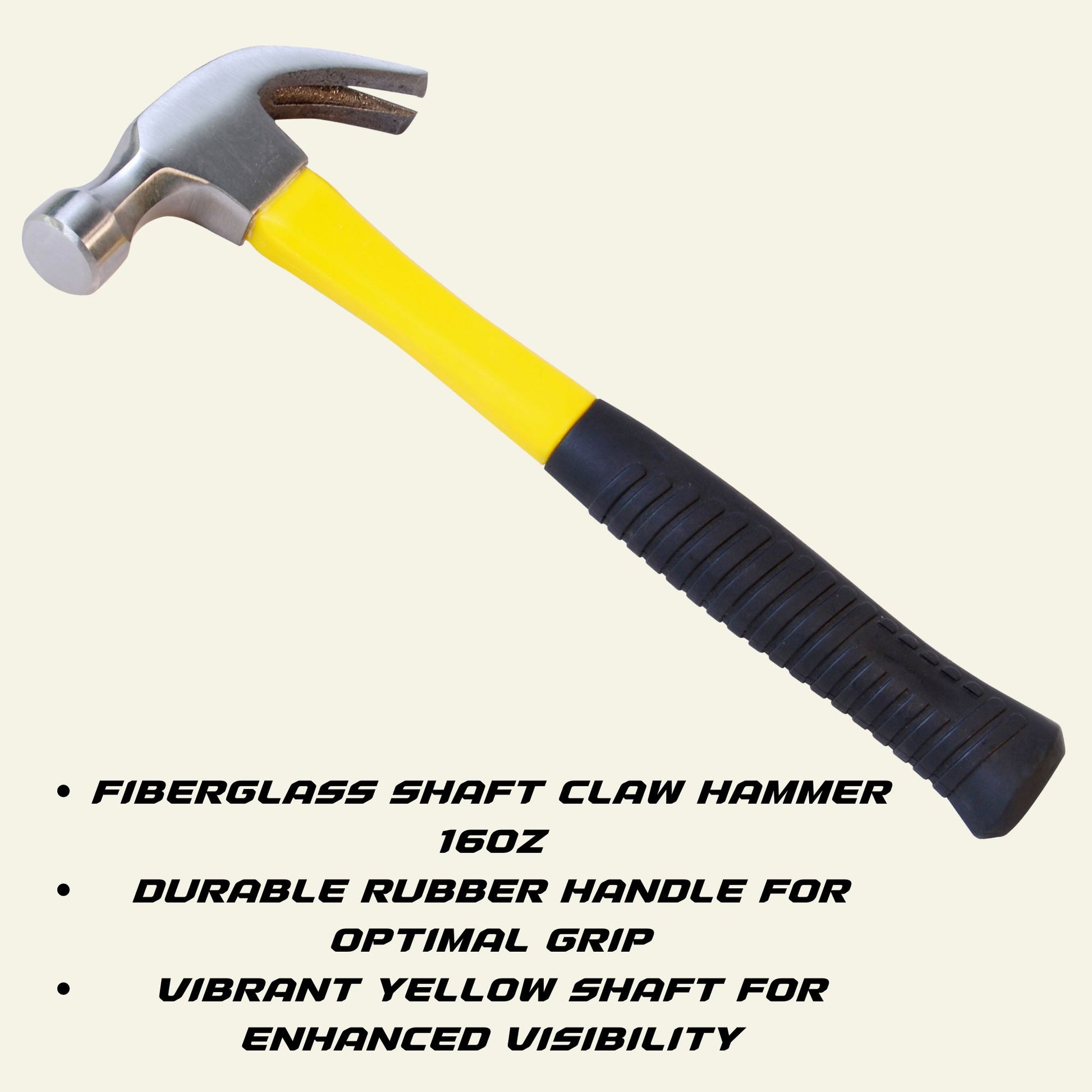 Fiberglass Claw Hammer 16oz Durable Grip High Visibility