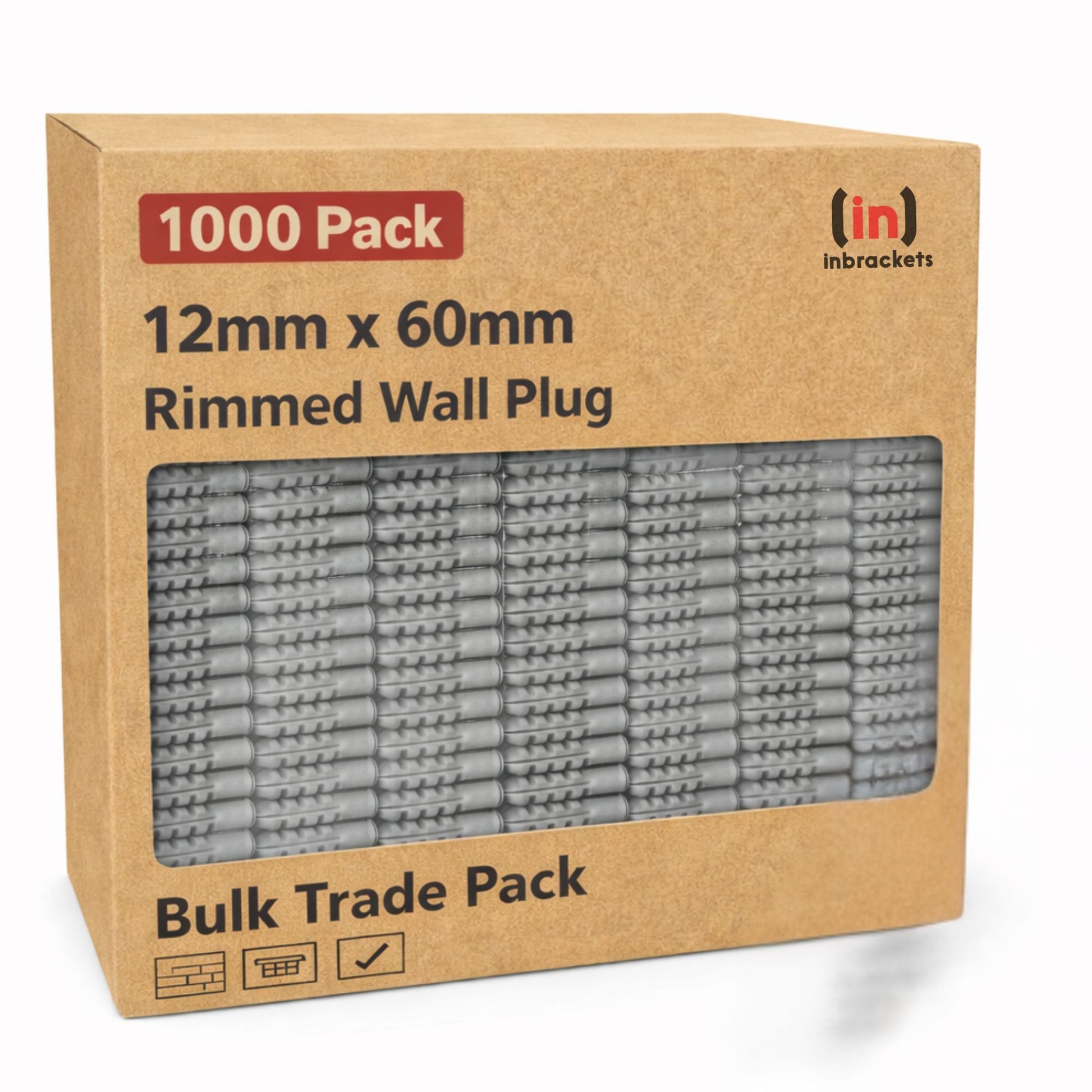 Inbrackets Rimmed Nylon Wall Plugs 12 x 60mm Heavy Duty