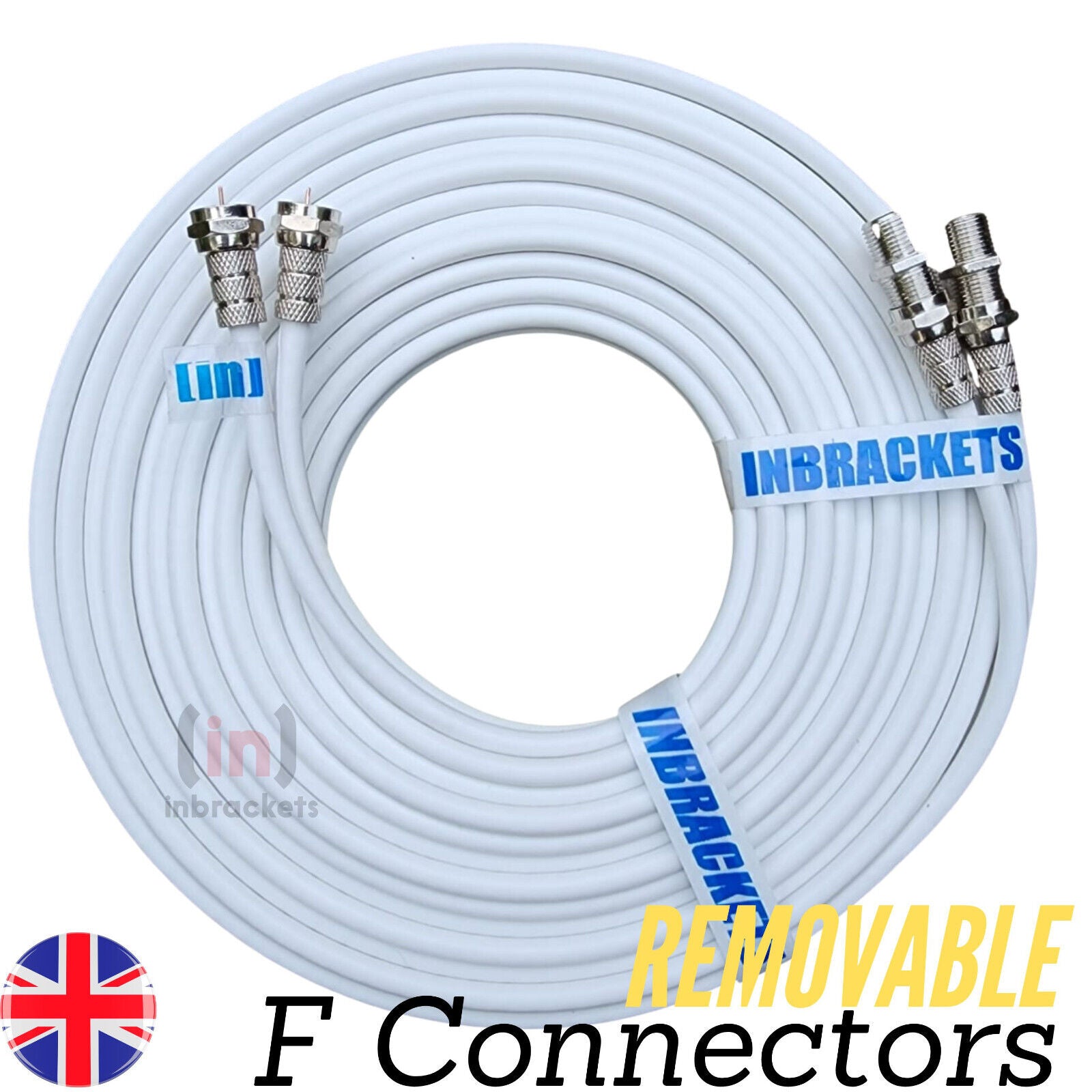 Sky Cable Extension Twin Coax Removable F plugs Q Satellite coaxial lead inc Clips WHITE