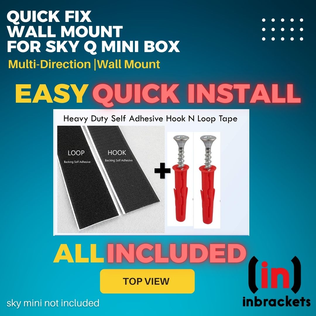 The Quick Fix Wall Mount from inbrackets® is a smart, space-saving solution designed specifically for the Sky Q Mini Box. With a slim, ultra-durable frame and 360° mounting flexibility, this bracket is perfect for wall-mounting behind a TV, under a desk, or inside a cabinet — all while keeping your device safe, cool, and fully accessible.