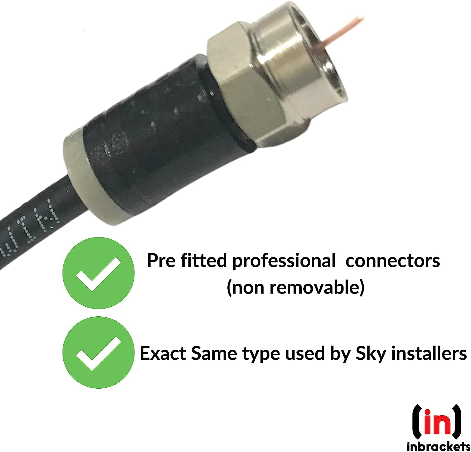 The kit comes with pre-fitted professional compressed connectors that are non-removable and are the same type used by Sky installers.