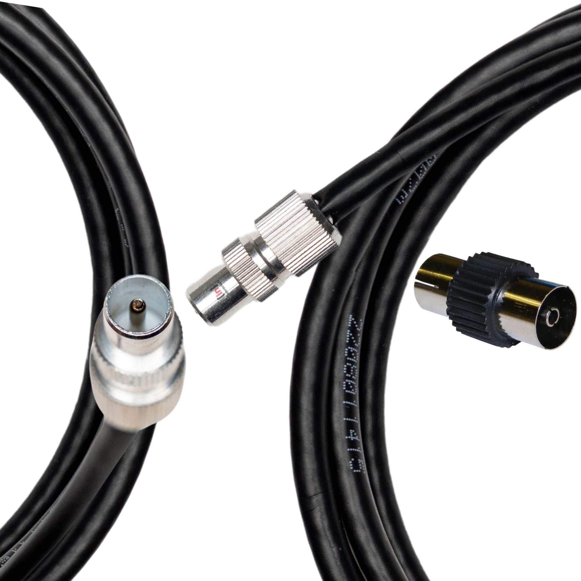 Tv Aerial Coax Cable RF Lead Male to Male with Coupler (Black)